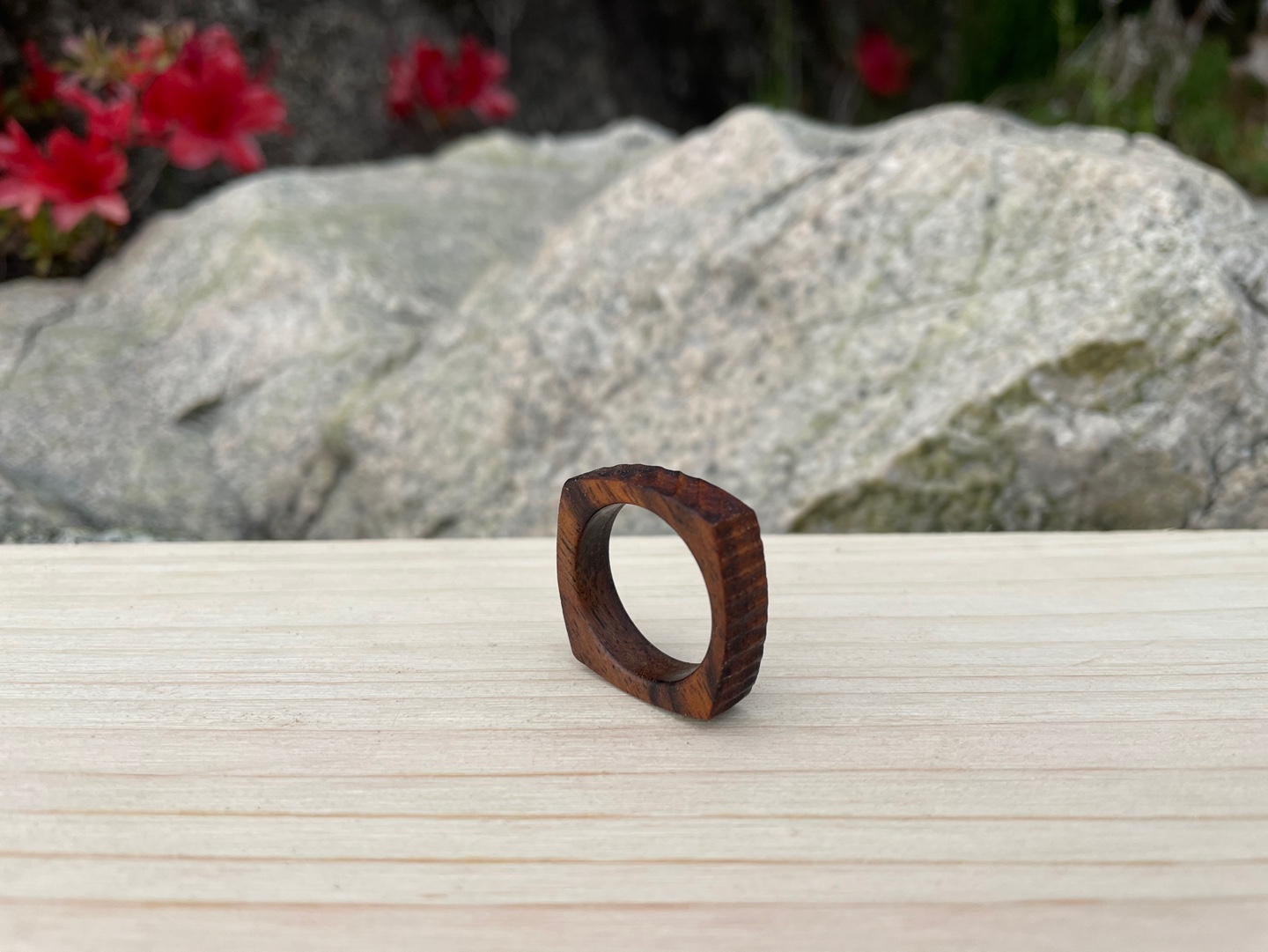 사각 우드 카빙 반지