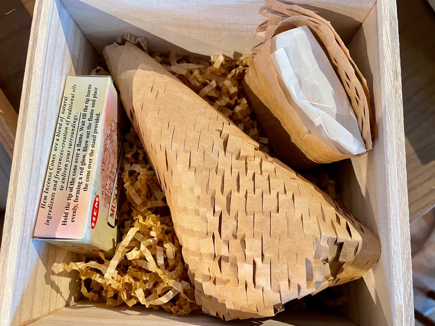 인센스 콘을 밑 받침에 올리고 향을 피우면, 나무인형의 입으로 향이 나오는 구조입니다