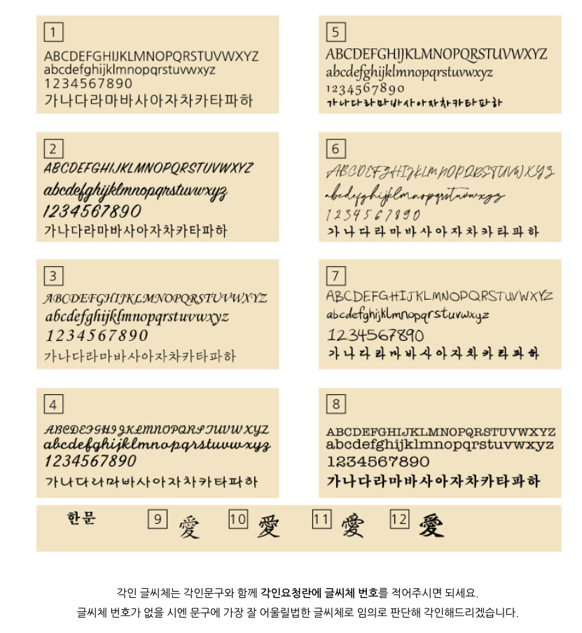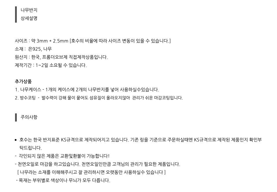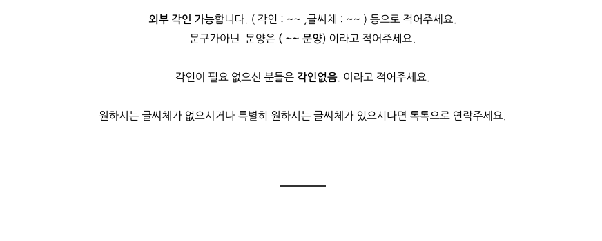 - 고객님의 요청에 의해 각인, 사이즈변경 및 형태변경 제작은 교환 및 환불이 불가합니다.