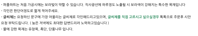 - 고객님의 요청에 의해 각인, 사이즈변경 및 형태변경 제작은 교환 및 환불이 불가합니다.