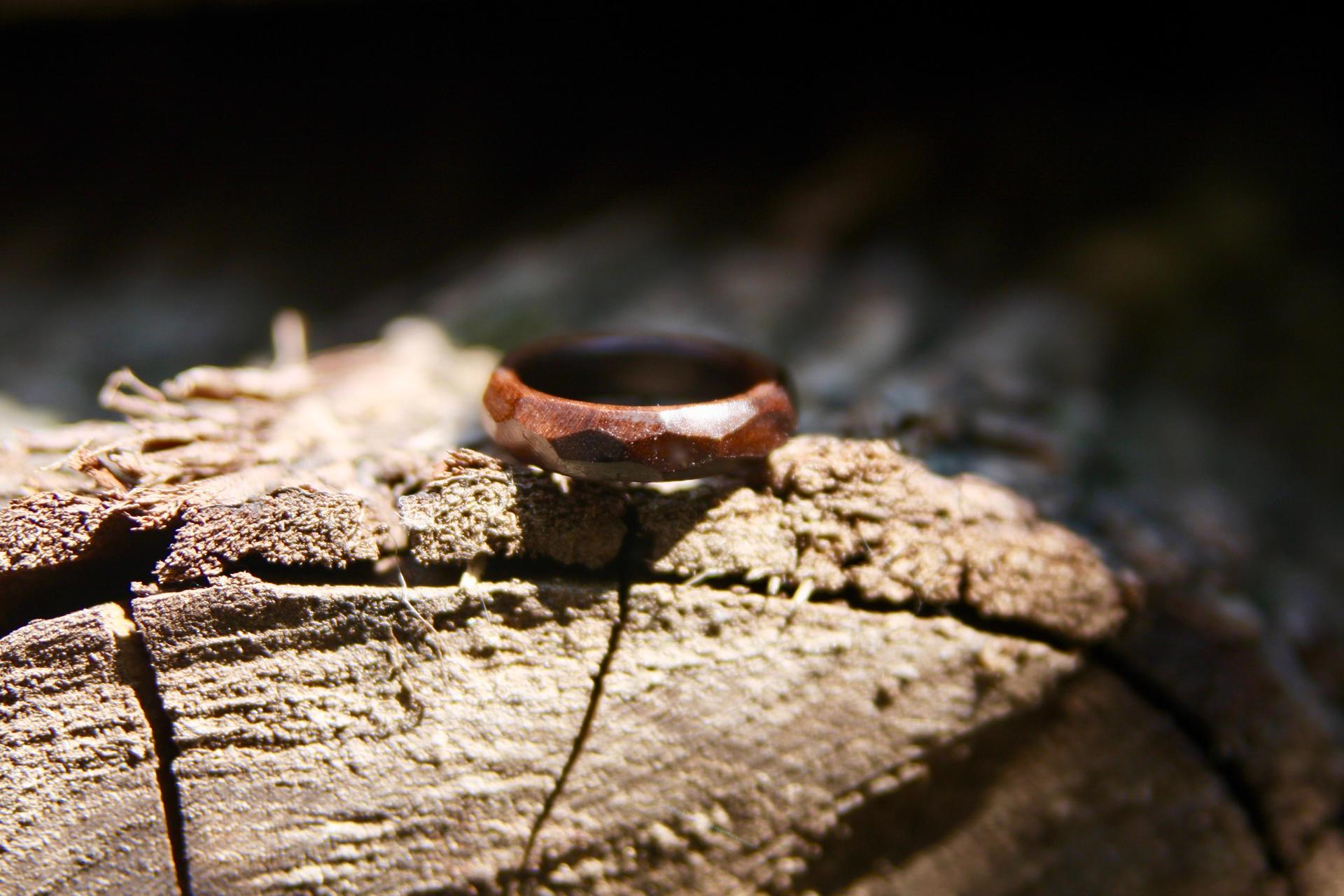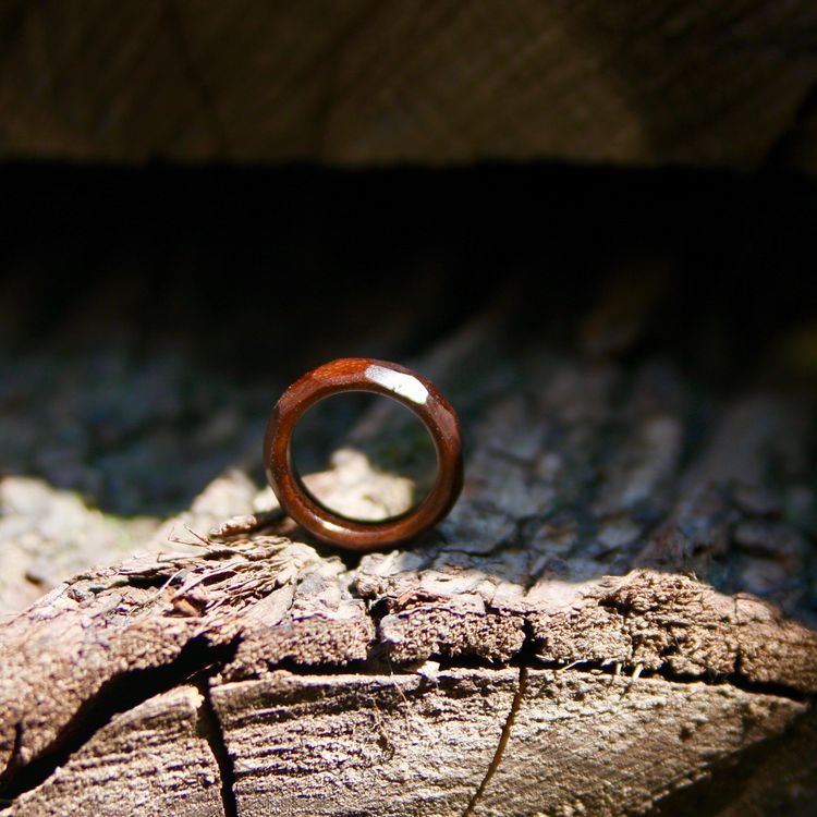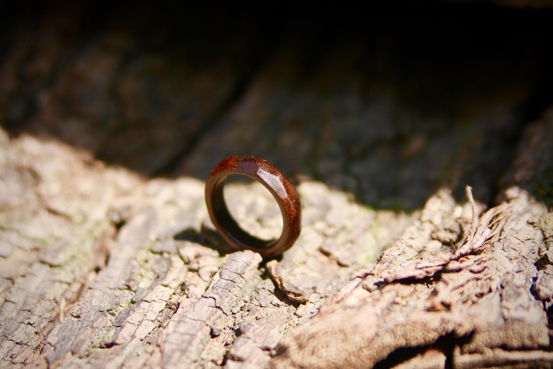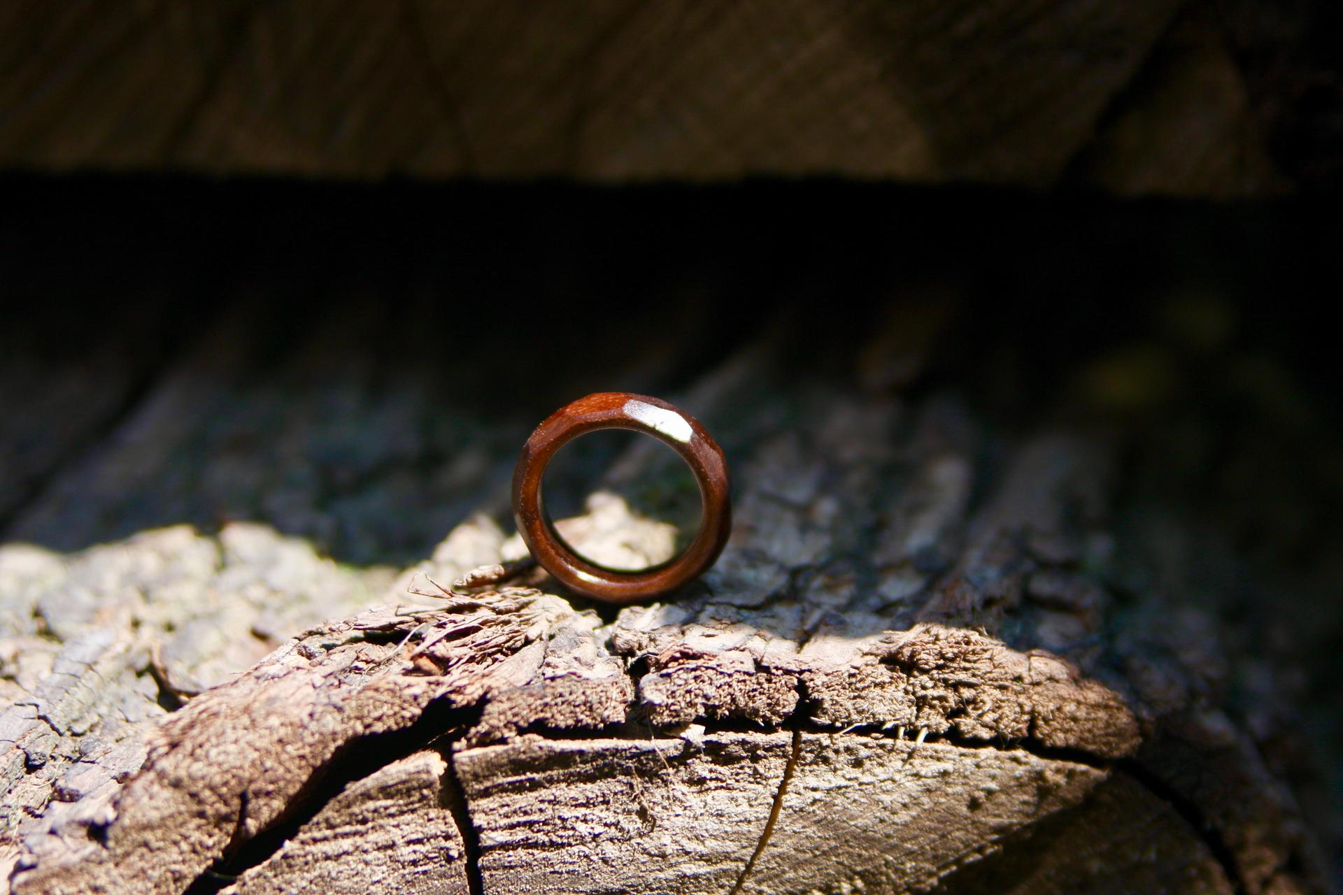 본 사진의 이미지는 호두나무로 제작된 다각형 나무반지 입니다.